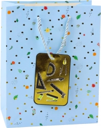 Fabriqué en carton décoratif de haute qualité, il conserve sa forme même en cas de charge plus importante. Les poignées cordelette dorées assurent un transport confortable et sécurisé. La palette pastel en rose, blanc, bleu et beige convient parfaitement au début ou à la fin de l’année scolaire, aux remises de diplômes et aux anniversaires.