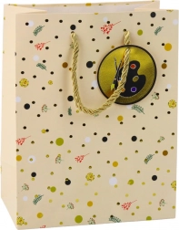Ce sac cadeau allie design élégant et praticité durable. Pois délicats, motifs floraux et feuillages sont rehaussés de détails dorés brillants et d’une étiquette illustrée de livres, calculatrice ou palette de peintre. Grâce à ses dimensions 32 × 26 × 12 cm, il accueille aisément des cadeaux de petite à moyenne taille.