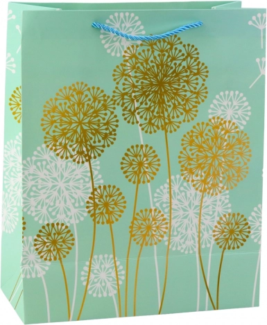Ce sac en papier stylé au motif naturel délicat de pissenlits et d’accents dorés et blancs donnera à votre cadeau une allure luxueuse. Idéal pour les anniversaires, anniversaires de mariage, mariages et fêtes familiales, il s’intègre parfaitement aux tendances décoratives modernes.