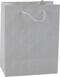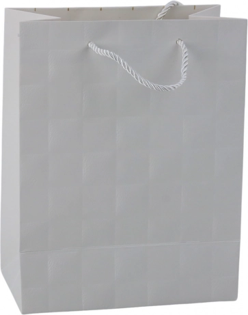 Ce sac cadeau stylé se distingue par son aspect épuré et sa texture subtile de carrés embossés, à la fois moderne et luxueuse. Grâce à son carton décoratif rigide et à ses poignées cordelettes de qualité, il est résistant et convient également aux cadeaux plus lourds.