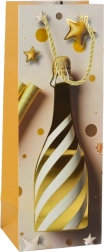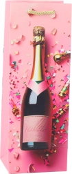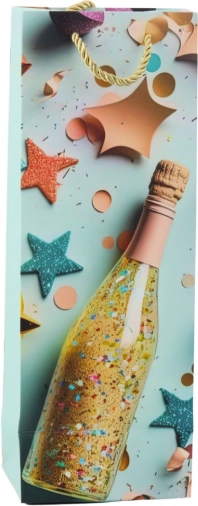Élégant sac cadeau en papier pour bouteille avec motif champagne, idéal pour offrir du vin ou du mousseux avec style à toute occasion. Il propose un carton décoratif rigide, des anses tressées dorées et un design festif avec confettis et étoiles dans des couleurs pastel. Parfait pour les anniversaires, mariages, le réveillon et autres moments d’exception.