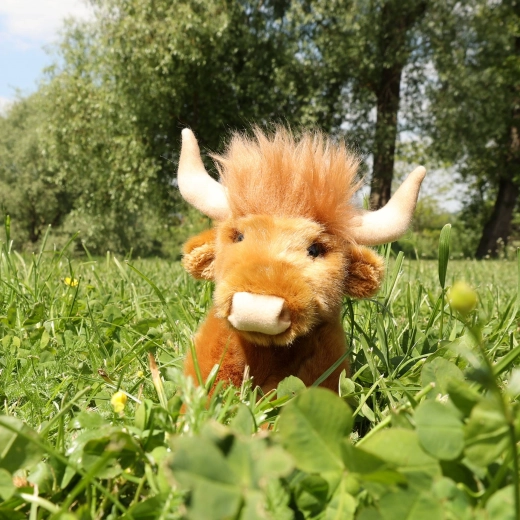 Adorable vache des Highlands en peluche de 16 cm, cousue à la main dans une peluche douce et de haute qualité. Grâce à ses détails réalistes, son toucher moelleux et son rembourrage écoresponsable issu de bouteilles PET recyclées, elle est idéale pour les câlins, la déco ou comme cadeau. Fait partie de la collection exclusive de la marque RAPPA.