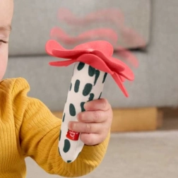 Les couleurs contrastées, les surfaces douces et les sons produits en les secouant stimulent la vue, le toucher et l’ouïe et maintiennent l’attention des enfants.