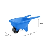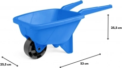 Une brouette pour enfants légère et résistante, de couleur bleue, ravira les petits bâtisseurs au jardin, sur le terrain de jeu comme à la plage. Elle présente des dimensions compactes de 53 cm, des poignées ergonomiques pour une conduite aisée et est fabriquée en plastique de qualité, sûr et durable. Idéale pour transporter du sable, des feuilles, des jouets et de petits cailloux et pour développer la motricité et la coordination.