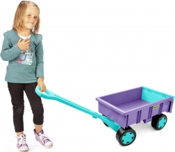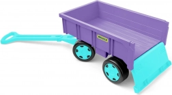 Remorque pour enfants robuste de la gamme Gigant en combinaison de couleurs violet et turquoise, supportant jusqu’à 60 kg de charge. Grâce à sa poignée de traction, elle sert à la fois de chariot à tirer autonome et de remorque pour d’autres véhicules de la série. Fabriquée en plastique de qualité, résistant, adaptée aux jeux en intérieur comme en extérieur.