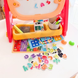 Tout ce dont les enfants ont besoin est inclus : alphabet magnétique et chiffres, feutres, craies, éponge, pratique étagère et gobelet pour accessoires, ainsi que deux jeux de société pour s’amuser ensemble. Ses dimensions compactes facilitent l’installation dans la chambre d’enfant.
