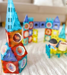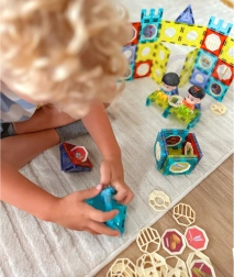 Des aimants puissants permettent aux enfants de construire et de reconstruire rapidement. Les structures gardent leur forme et encouragent de nouvelles expériences avec les formes et les couleurs.