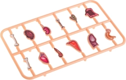 Le coffret comprend un plateau de jeu avec patient, une roulette, une pince et 12 organes. À l’arrière se trouve un compartiment pratique pour ranger tous les éléments.