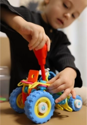 Les enfants assemblent et démontent eux-mêmes les modèles à l’aide du tournevis et de la clé fournis – en toute sécurité, simplement et de manière ludique.