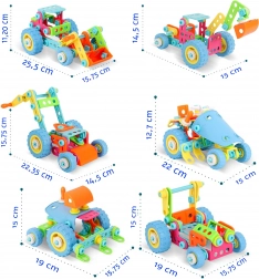Découvrez le jeu de construction de véhicules 6 en 1 de la marque WOOPIE, qui apporte aux enfants des heures de divertissement intelligent. Avec 118 éléments, ils assembleront une pelleteuse, un tracteur, une voiture ou une grue tout en développant leur motricité fine, leur pensée logique et leur représentation spatiale. Le système de vissage intuitif, des matériaux sûrs et un manuel illustré garantissent un montage facile et beaucoup de plaisir créatif.