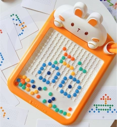 Le tableau magnétique MagPad est un excellent allié pour le développement de la créativité et des compétences motrices des enfants. Le set comprend 2 stylos magnétiques en forme de carotte et 70 boutons magnétiques que les enfants peuvent utiliser pour créer leurs propres motifs et mosaïques. Grâce au principe de jeu, son utilisation est simple, ce qui encourage l'indépendance et la créativité de l'enfant.
