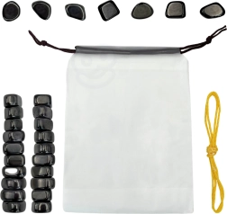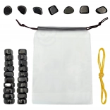 - 20 cailloux magnétiques de formes variées, cordon jaune, sac en tissu, notice