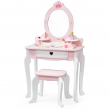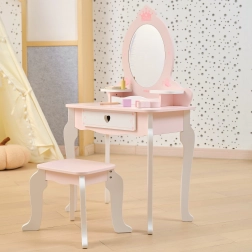 Cette charmante coiffeuse pour enfant en bois, aux couleurs rose‑blanc de la marque Viga, transforme la chambre en petit royaume. Elle comprend un miroir sûr avec une couronne décorative, un tabouret confortable, un tiroir spacieux et un ensemble d’accessoires cosmétiques en bois. Grâce à sa fabrication de qualité, à ses bords lisses et à ses peintures non toxiques, elle est idéale pour les jeux créatifs et les jeux de rôle des enfants.