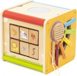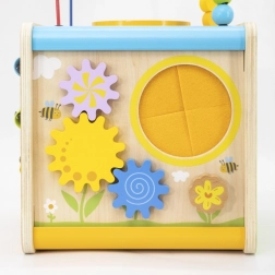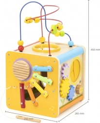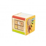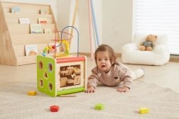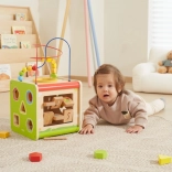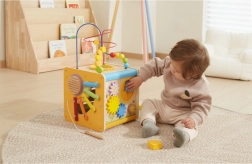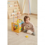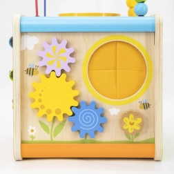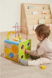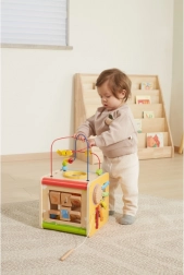 Le bois massif et les bords soigneusement polis garantissent une utilisation sûre, tandis que les couleurs intenses et les mécanismes ludiques retiennent l’attention des petits explorateurs pendant longtemps. Le cube est idéal pour le jeu autonome comme pour les moments partagés avec les parents.