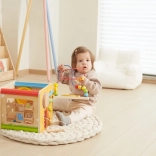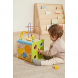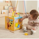 Ce cube multifonction offre aux enfants une riche stimulation sensorielle et motrice dans un format compact. Chaque face propose une activité différente qui développe les compétences par le jeu – de la reconnaissance des formes et des couleurs à la découverte du rythme et des sons, jusqu’aux premières notions du temps.