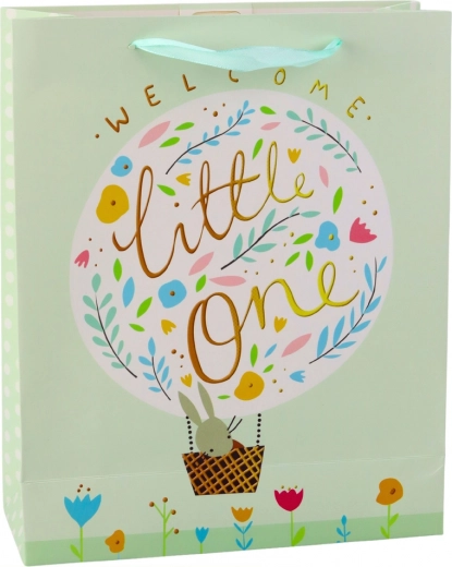 Le sac cadeau Welcome Little One est fabriqué en carton décoratif de haute qualité, garantissant durabilité et rendu esthétique. Les anses en satin couleur menthe ajoutent élégance et confort de port. Ses dimensions de 32 x 26 x 12 cm le rendent idéal pour emballer des cadeaux petits à moyens, tels que vêtements, jouets ou produits de soin pour bébé.