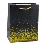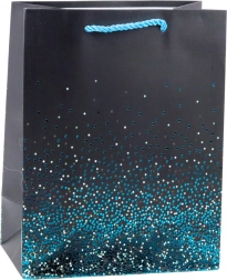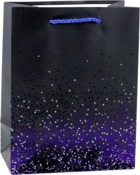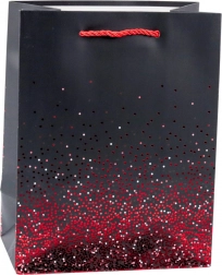 Disponible en quatre variantes de couleur : jaune, violet, rouge et turquoise. Chaque couleur est rehaussée d’un fond noir qui souligne l’élégance et le contraste avec l’effet scintillant. De solides poignées en cordon, assorties aux tons du dégradé, assurent un transport confortable, tandis que la construction robuste garantit un rangement sûr même pour des cadeaux plus lourds.