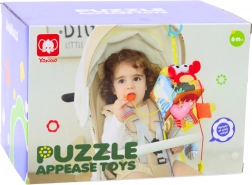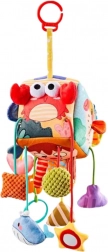 Les suspensions attachées au cube ont différentes fonctions. Certaines bruissent ou teintent, tandis que d'autres peuvent être tirées et pressées. Toutes les parties du jouet encouragent l'enfant à interagir et à découvrir de manière autonome.