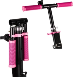 La sécurité est renforcée par un plateau antidérapant, des poignées pliables antidérapantes et un frein au pied fiable intégré au garde-boue arrière. Grâce au guidon réglable 87–92–98 cm, la trottinette s’adapte à la taille de l’enfant et évolue avec lui.