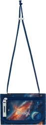Porte-monnaie avec motif cosmique, à suspendre autour du cou. Comprend des poches pour petits objets et une étiquette de nom.