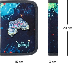 La trousse comporte deux rabats et des élastiques solides. Elle offre une fenêtre pratique pour l’emploi du temps et un espace pour les petits objets.