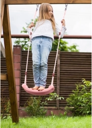 Balançoire élégante et sûre pour enfants, idéale pour le jardin ou la maison. Conçue pour offrir stabilité et confort grâce à son siège profilé et à ses cordes solides.