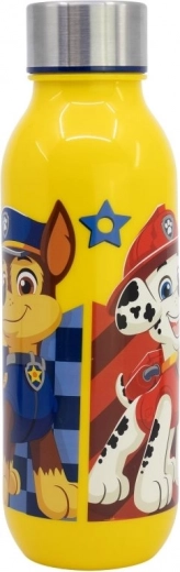 Bouteille en plastique réutilisable et résistante avec motif Pat' Patrouille, équipée d’un bouchon à vis en acier, idéale pour les enfants.