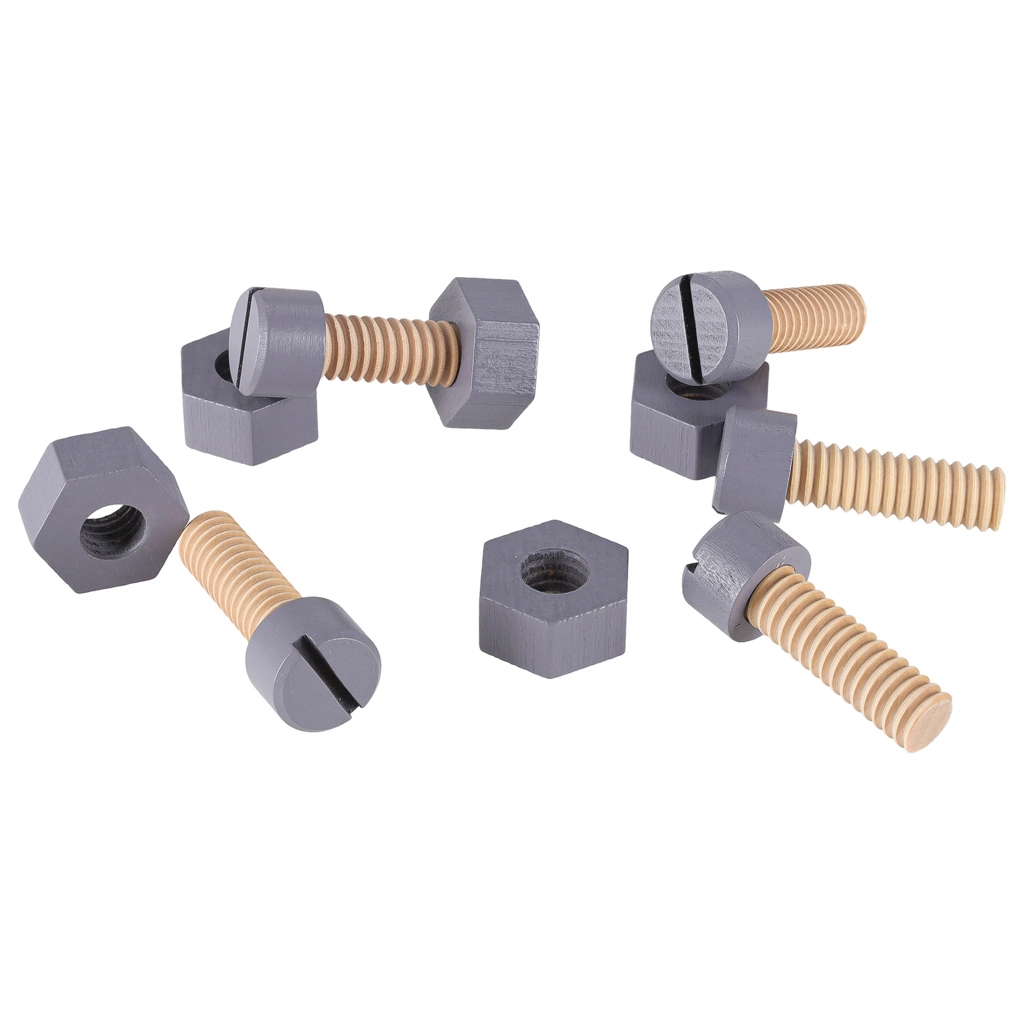 La manivelle fonctionnelle de l’étau et le plateau percé permettent aux enfants de fixer les pièces en toute sécurité et d’exercer des compétences de base comme dans un véritable atelier.