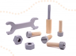 Le jouet imite de vrais outils comme un tournevis, un marteau et une clé, idéal pour développer les compétences manuelles et l'imagination des enfants.