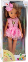 Pretty Girl porte une élégante robe rose avec un jupon en tulle et un motif brodé de lapin sur le haut. Le style est complété par de petites chaussures roses assorties à toute la tenue. La poupée possède des membres et une tête articulés, permettant de la positionner de différentes façons pour jouer des scènes de la vie.