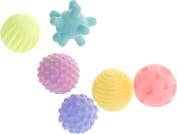 Chacun des six ballons de l'ensemble a une texture unique qui stimule les sens et améliore les capacités tactiles.