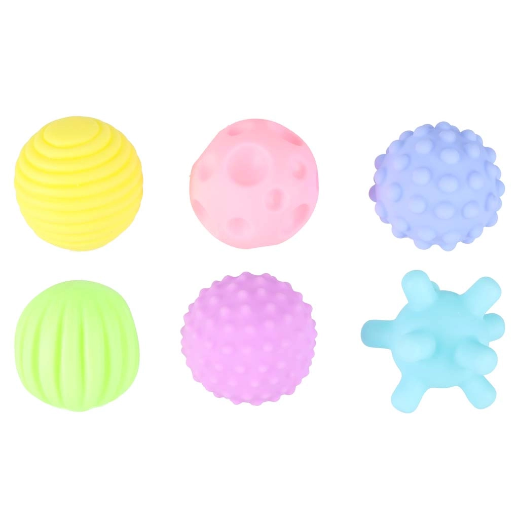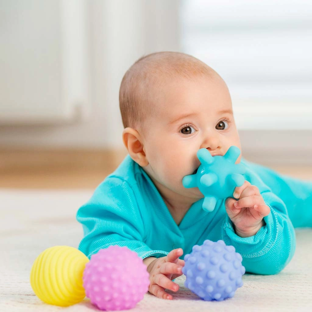 Chaque balle possède une surface différente – reliefs, creux, rayures ou picots – qui stimule le toucher et aide les enfants à découvrir de nouveaux stimuli.