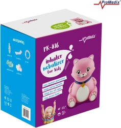 L’inhalateur pour enfants PROMEDIX en forme de chaton rend les séances d’inhalation plus agréables et aide en cas de rhume, de nez bouché et de toux. Le compresseur à piston assure une nébulisation fiable de la solution physiologique ainsi que des médicaments prescrits par le médecin, ciblant directement les voies respiratoires. Les formes arrondies, le corps isolé thermiquement et les plastiques de qualité, conformes aux exigences sanitaires, garantissent une utilisation sûre.