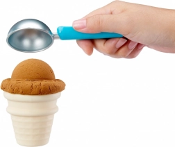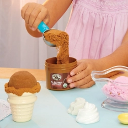 Grâce au sable de modelage et à la cuillère doseuse astucieuse, les enfants créent facilement des boules réalistes pour cornets et coupelles – un jeu ludique qui développe la motricité fine.