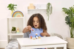 Les figurines et accessoires de cuisine stimulent la créativité, la communication et le développement de la motricité fine.
