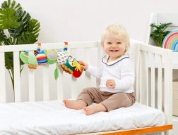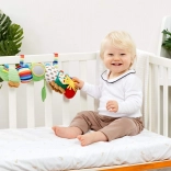 Des boucles textiles fixent le jouet au lit bébé, à la poussette ou au siège auto – le compagnon idéal à la maison comme en sortie.