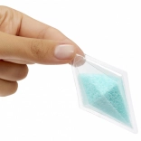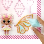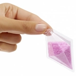 Parsemez la « poussière de fée » colorée, ajoutez de l’eau avec la pipette et créez un motif brillant original que vous fixerez à la poupée une fois sec.