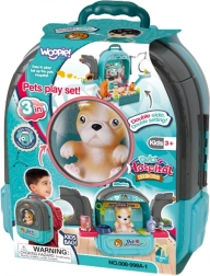 Découvrez l’univers créatif des soins aux animaux avec le set portable WOOPIE 3-en-1. Le sac à dos pratique se transforme, une fois ouvert, en une véritable clinique vétérinaire avec maisonnette et jardin, où les enfants peuvent examiner, soigner et choyer leurs chiens. Grâce au riche assortiment d’accessoires, le jeu est passionnant, réaliste et éducatif.