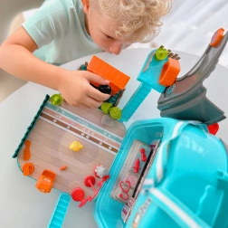 Légère valise/sac à dos portable qui, une fois ouverte, devient un espace de jeu avec maisonnette et jardin. Les enfants peuvent jouer partout et ont tout à portée de main au même endroit.