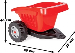 La remorque est compatible avec les tracteurs à pédales et véhicules WOOPIE (p. ex. GoTrac, MaxTrac) et, grâce à ses roues silencieuses avec antidérapant, la conduite est stable et confortable. La benne basculante stimule motricité et imagination – charge, transporte et déverse autant que tu veux.