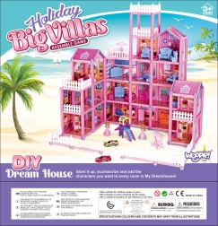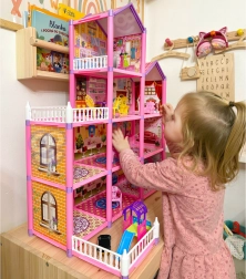Le set comprend 194 pièces, dont des éléments pour un montage DIY, du mobilier, des décorations et des figurines. La maison est fabriquée avec des matériaux sûrs, durables et colorés, idéale pour les enfants dès 3 ans et conçue pour résister à de longues heures de jeu.