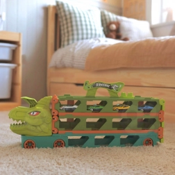 Le camion amusant Dino de la marque Woopie est un set de jeu parfait pour les enfants, combinant un camion avec une piste coulissante. Les enfants peuvent faire courir leurs petites voitures sur une piste de 2,1 mètres, avec en plus un rangement et un transport faciles du jouet.