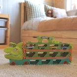 Le système de lanceur permet aux petites voitures de partir comme l’éclair, intensifiant l’expérience de course. Il suffit d’appuyer sur l’élément mobile situé sur la tête du dinosaure.