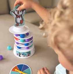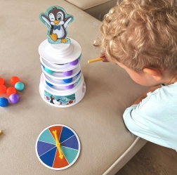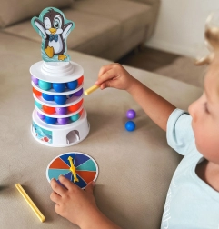 Le jeu Pingouin sur la tour encourage le développement des compétences en dextérité tout en cultivant la patience lors de la construction de la tour avec tous ses pièges.