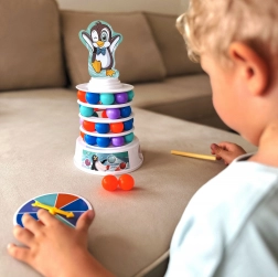 Le jeu Woopie Pingouin sur la tour apporte amusement et exercice de précision et adresse. Il suffit de construire une tour instable et d'essayer de placer des billes colorées sans faire tomber la tour. Idéal pour les enfants à partir de 4 ans ainsi que pour les adultes avec la famille et les amis.