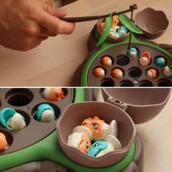 Le jeu de société amusant pêche aux petits dinosaures de la marque WOOPIE apporte aux enfants dès 3 ans plein d’action et de rires. La base rotative avec des ouvertures qui s’ouvrent, des cannes magnétiques et des figurines de dinosaures entraînent la motricité fine, la coordination œil-main et la créativité. Deux « œufs de dino » refermables servent de cachette pour les dinos capturés, et l’interrupteur propose un mode silencieux ainsi qu’une mélodie agréable pour encore plus de fun.