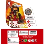 Ce set très professionnel est une représentation fidèle des véritables outils de pompier. L'extincteur pulvérise de l'eau réelle, la lampe de poche éclaire et le mégaphone émet le son d'une sirène de pompier. L'enfant peut personnaliser son identifiant avec son nom et se sentir comme un vrai pompier. Les éléments sont idéalement adaptés aux petites mains d'enfants. Le jeu de rôle pompiers encourage la créativité et l'imagination, et accroît la conscience de la vie quotidienne.