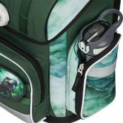 Le cartable est fabriqué en matériau résistant à l'eau, protégeant tout son contenu. La fermeture magnétique intuitive Fidlock offre un accès facile et rapide, tandis qu'un système ludique d'insignes interchangeables permet de personnaliser l'apparence selon l'humeur. Un organiseur pratique, une poche avant isolée et deux poches latérales symétriques garantissent un espace de rangement suffisant.