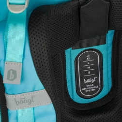 Le cartable d'école Dauphin de Baagl est équipé d'un système dorsal coulissant ERGO ADJUSTABLE, qui permet d'adapter la taille du cartable aux besoins d'un enfant en pleine croissance. Grâce aux bretelles entièrement ajustables, le cartable s'adapte parfaitement à la morphologie de l'écolier.