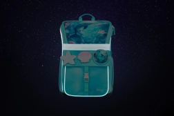Le cartable offre un système unique de badges interchangeables et des éléments réfléchissants pour augmenter la visibilité et la sécurité de l'enfant.